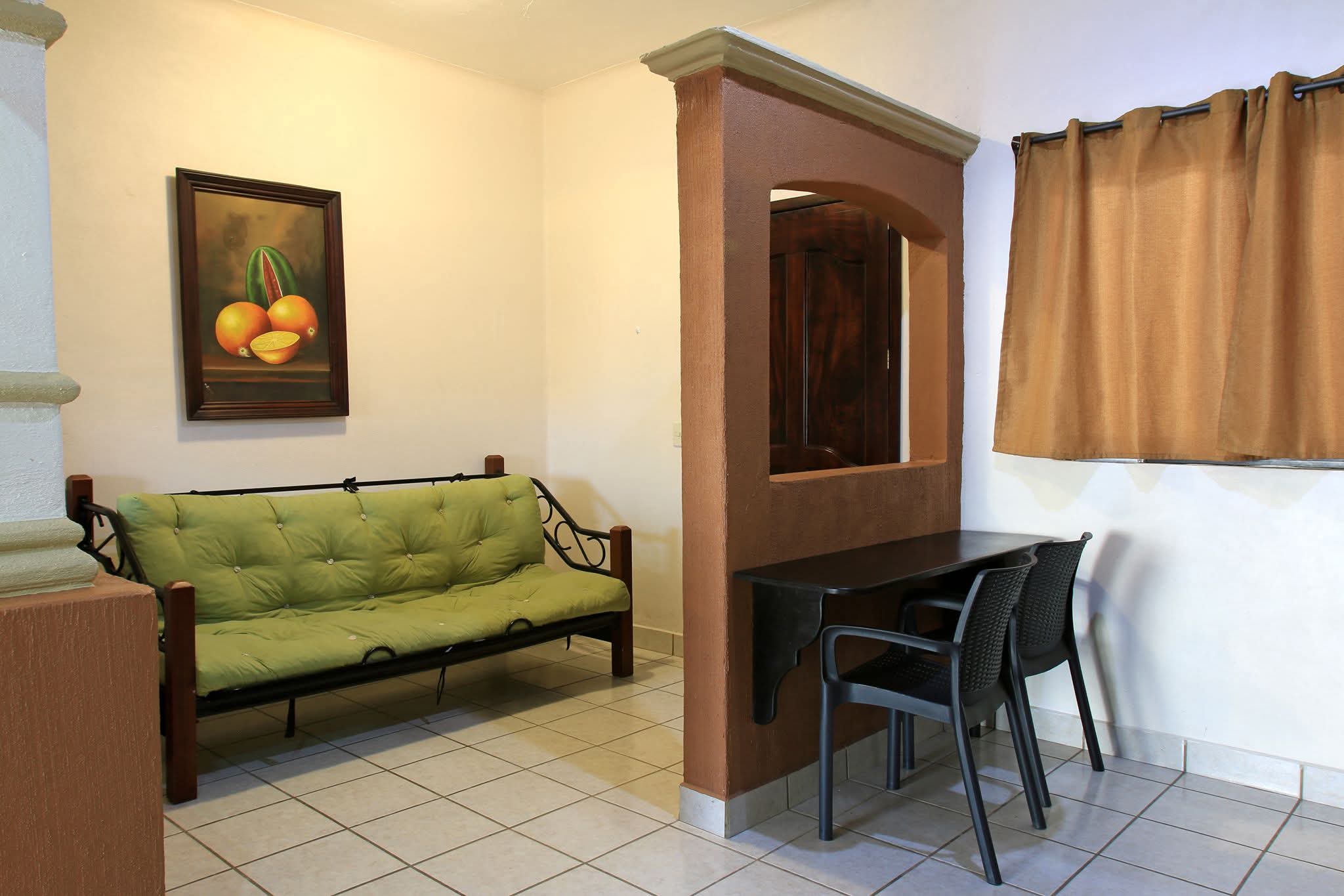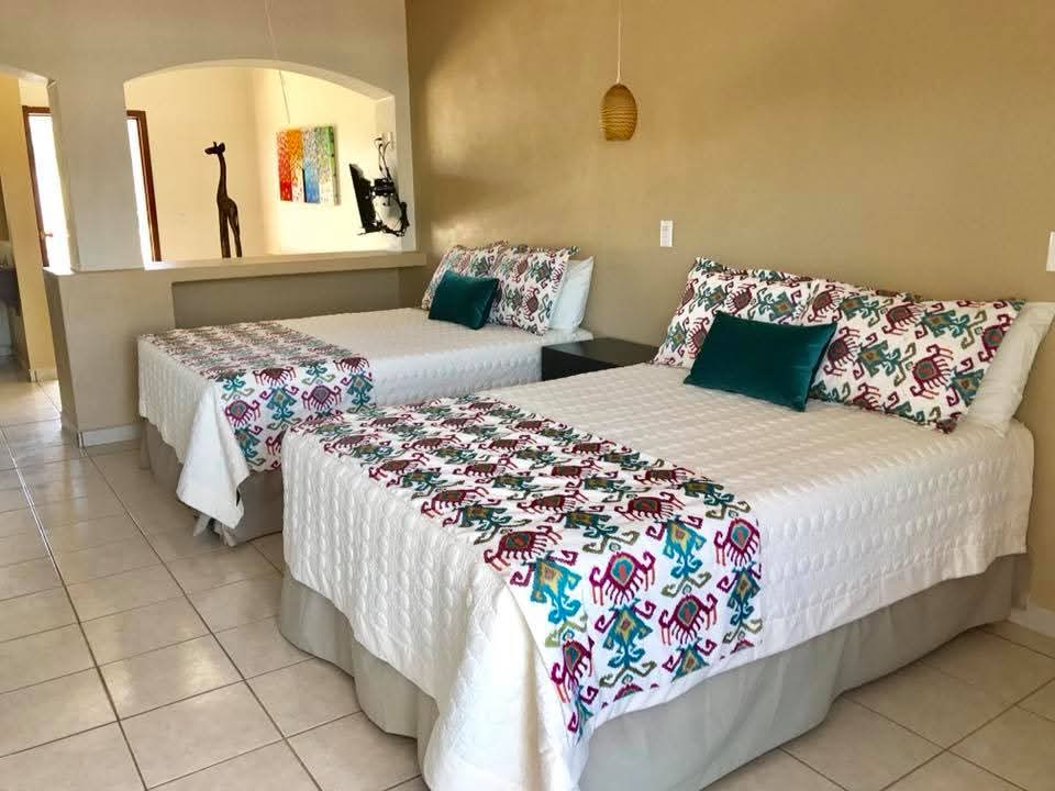 Capacidad Máxima a 4 personas, 2 camas matrimoniales, 1 sofá cama, 1 baño con agua caliente, Servicio de Wifi, Cocina totalmente equipada, Refrigerador, Estufa, Accesorios de cocina, Televisión Satelital, Closet y Balcón.